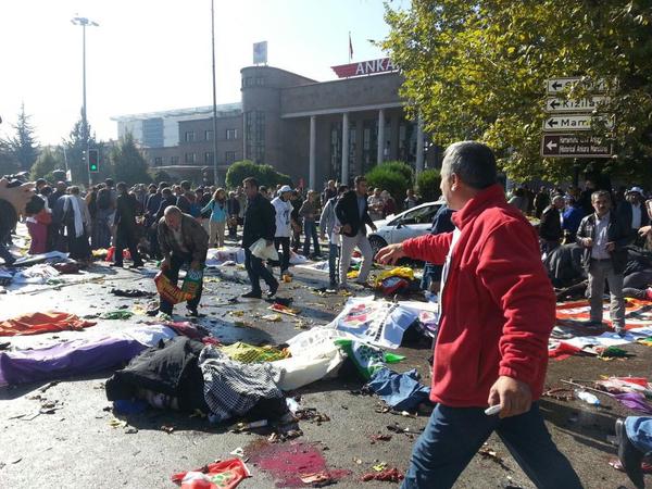 أعلنت وزارة الداخلية التركية، أن 30 شخصًا قتلوا، وأصيب أكثر من 120 آخرين؛ نتيجة للانفجارين اللذين هزا العاصمة التركية أنقرة، صباح اليوم السبت، بحسب موقع “روسيا اليوم”.