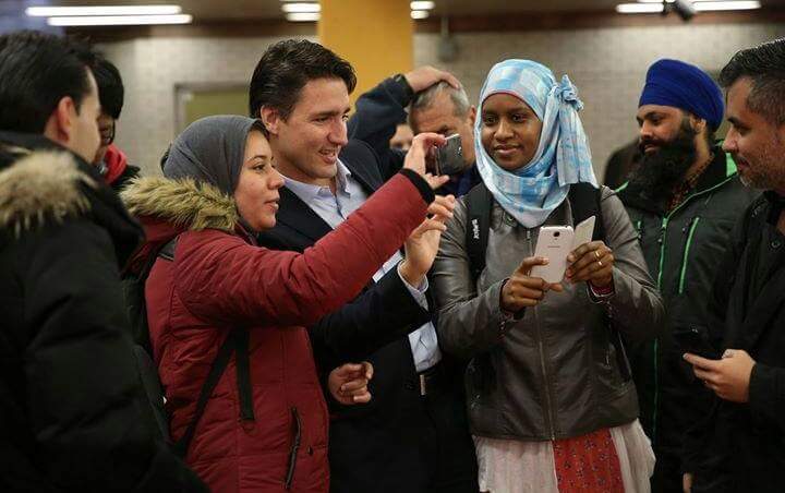 وجه رئيس الوزراء الكندي المنتخب، جاستن ترودو، التحية لسيدة مسلمة محجبة التقته قبل الانتخابات، وقال: “هناك آلاف القصص التي أريد أن أحكيها لكم، ولكن هناك قصة بالتحديد أود أن أشركم فيها. في الأسبوع الماضي التقيت في سانت كاثرين مع أم شابة ترتدي الحجاب، وقدمت لي ابنتها وقالت لي شيئا لن أنساه: أريد أن أصوت لكم حتى يكون لابنتي مستقبلا تختار فيه حقها وأن الحكومة ستحميها”.