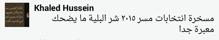 وعلق خالد حسين قائلا: “مسخرة انتخابات مسر 2015 شر البلية ما يضحك، معبرة جدا”.