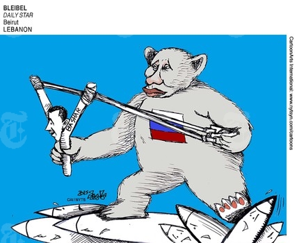 وعبرت صحيفة “دايلي ستار” اللبنانية عن قيادة روسيا للعمليات في الأراضي السورية بهذا الرسم: