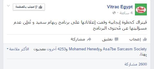 وكانت شركة “ألو إيفا”، هى أول شركة تعلن اسنحابها من برنامج ريهام سعيد “صبايا الخير”، وذكرت عبر حسابها بموقع “فيس بوك”، “تعلن شركة ألو إيفا عن عدم مسؤوليتها عن محتوى أي من البرامج التي تقوم بإذاعة إعلاناتها على قنواتها، وبشأن برنامج صبايا الخير والمُثار جدل حوله فقد قامت الشركة بوقف رعايتها للبرنامج”.