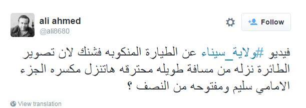 وعلق مسلم موحد لله: “سقوط طائرة روسية على متنها 212 شخص بصاروخ أرض جو في وسط سيناء”.