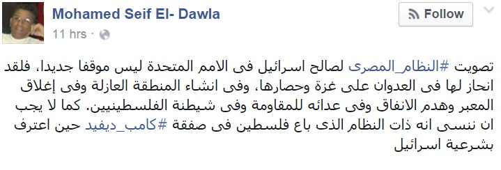 وعربيًا، أكد الصحفي والمحلل السياسي الفلسطيني ياسر الزعاترة أن تصويت مصر لإسرائيل كشف ما كان يخفيه السيسي على البسطاء.