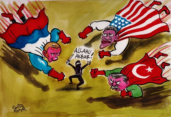 وأما عن مقاومة العالم لتنظيم الدولة نشر أيضا “بولتيكال كارتونز” هذا الرسم: