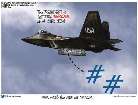 أما عن محاربة أميركا لتنظيم الدولة فسخر موقع “تاون هال” الأميركي من خلال الرسم: