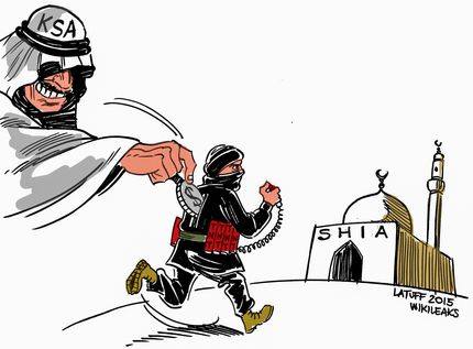 ورسم رسام الكاريكاتير المعروف “كارلوس لاتوف” هذا الرسم الذي أشار فيه إلى أن السعودية تدعم تنظيم “الدولة” ضد الشيعة، في إشارة إلى تفجيرات مساجد الشيعة التي تكاثرت في الشهور الأخيرة: