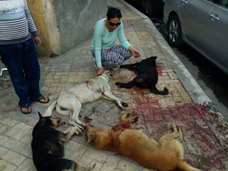 تداول عدد من رواد مواقع التواصل الاجتماعي صورا لبعض الكلاب الضالة مقتولة بطريقة وحشية في منطقة الأزاريطة بمحافظة الإسكندرية.