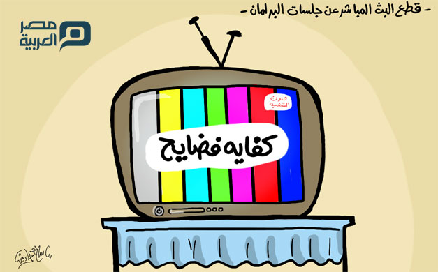 وسخر موقع “مصر العربية” من منع بث جلسات برلمان السيسي بهذا الرسم: