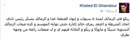 وأضاف “الغندور” -عبر حسابه الشخصي على “فيس بوك”- “ريكو في الزمالك لمدة 5 سنوات وإنهاء الصفقة اليوم.. والزمالك يشكر رئيس نادي اتحاد الشرطة”.