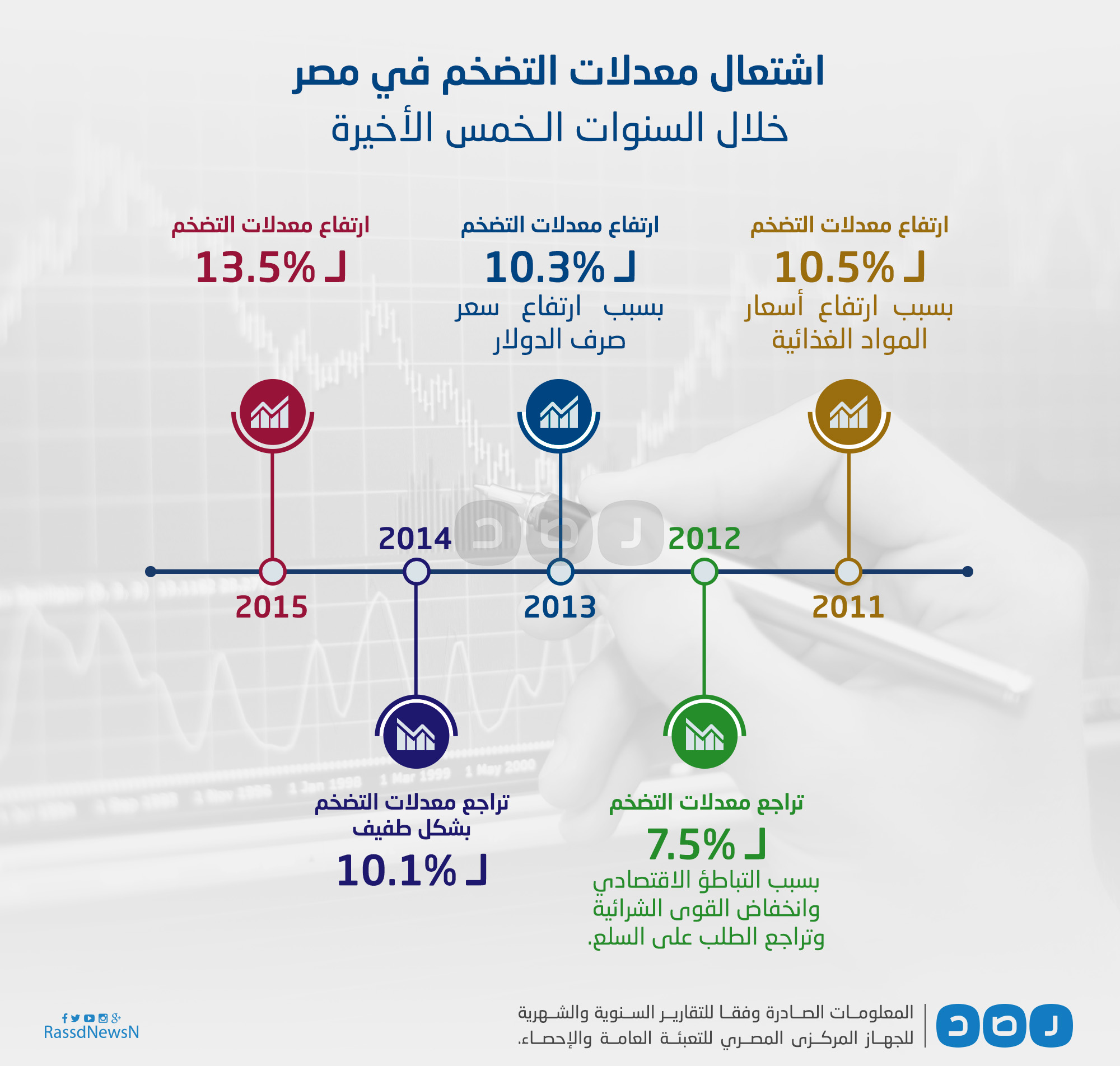 2015: ارتفاع معدلات التضخم لـ13.5%.
