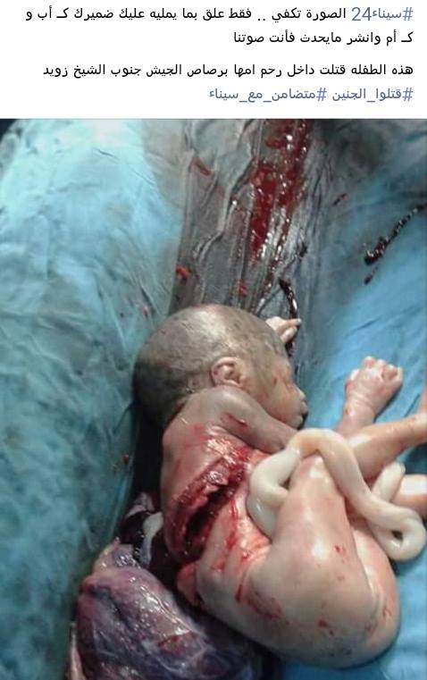 بالصور.. “قتلوا الجنين” هاشتاج يفضح ممارسات الجيش مع أهالي سيناء