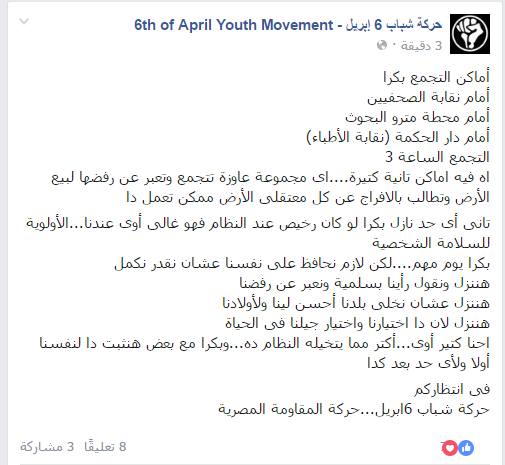 واختتمت “6 إبريل” منشورها قائلة: “احنا كتير أوي… أكتر مما يتخيله النظام ده… وبكرا مع بعض هنثبت دا لنفسنا أولًا ولأي حد بعد كدا… في انتظاركم”.