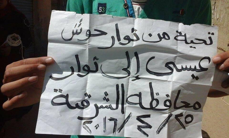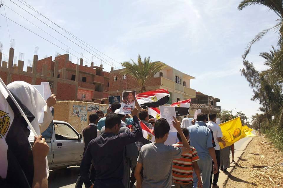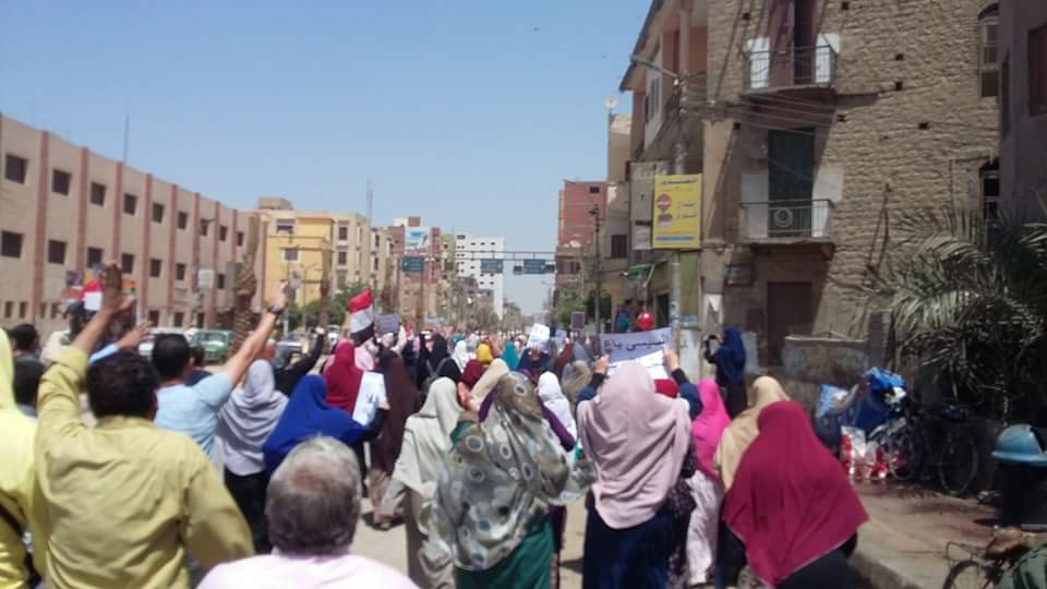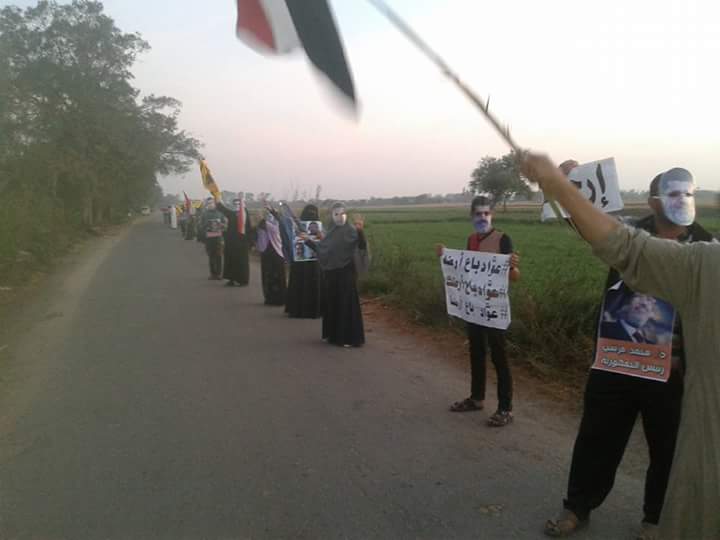 نظمت حركة أحرار “قرى حوش عيسى” سلسلة بشرية بدأت في وقت مبكر من صباح اليوم على طريق مصنع الغاز، رفع المشاركون فيها لافتات تحمل عبارات: “دولة حاتم، عواد باع أرضك، مرسي صان والسيسي خان”، كما خرج شباب حوش عيسى في مسيرة جديدة أمام مسجد خاتم المرسلين لتطوف أحياء “المنشية، السنوسي، السويقة”.