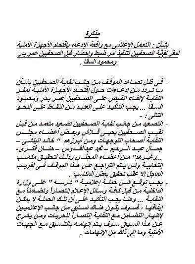 أرسلت وزارة الداخلية بيانًا بالخطأ، للصحفيين المكلفين بتغطية أخبارها، تضمن مذكرة تكشف خطتها في التصعيد ضد الصحفيين وأعضاء مجلس النقابة.