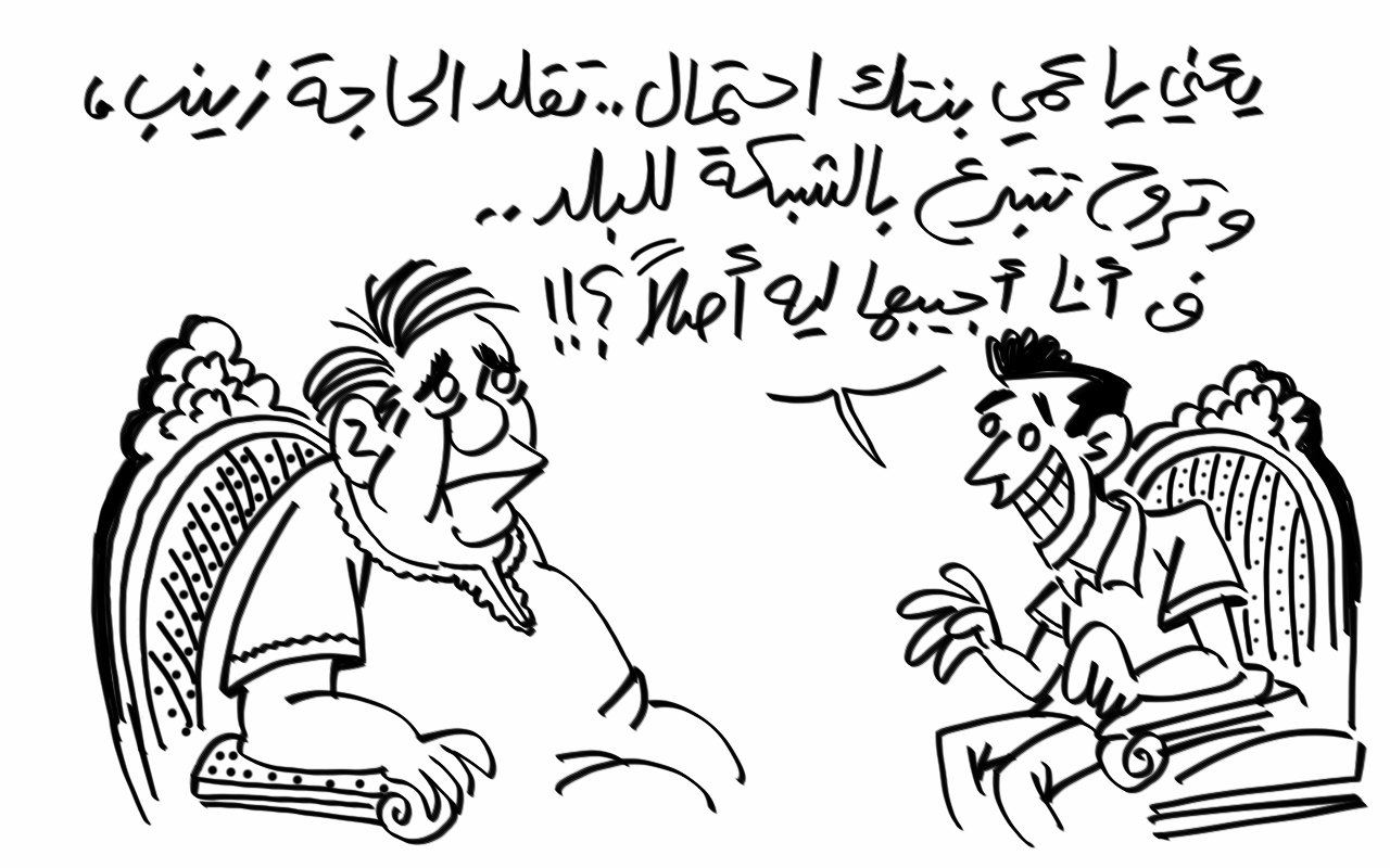 وسخر المصري اليوم من “حلق الحاجة زينب” في رسم ساخر يبرز تجاهل الشباب للشبكة خوفا من التفريط فيها فيما بعد.