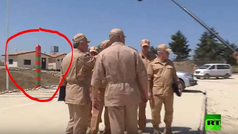 وكشفت الزيارة الأخيرة لوزير الدفاع الروسي سيرجي شويجو، فضيحة جديدة من فضائح السيادة الوطنية التي يعلق عليها نظام الأسد كلّ “الفشل الوطني” الذي يصيبه يوميًا، حيث صوّرت كاميرات الإعلام الروسي، وزير الدفاع الروسي وهو يتجول في أرض قاعدة حميميم الجوية، ولوحظ وجود أعمدة مخططة باللونين الأخضر والأحمر، (مرفق صورة) وهي من العواميد التي تستخدم كقواطع حدودية (borders boundary) وتحديدًا لدولة روسيا الاتحادية.