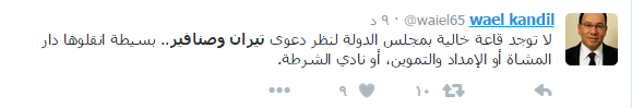 – وائل قنديل: “لا توجد قاعة خالية بمجلس الدولة لنظر دعوى تيران وصنافير .. بسيطة انقلوها دار المشاة أو الإمداد والتموين، أو نادي الشرطة. “