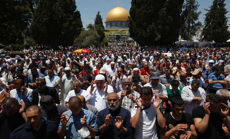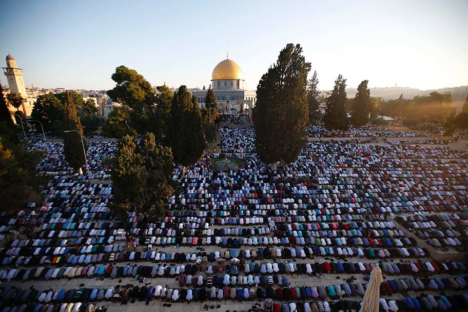 أدى نحو 100 ألف مصلٍ أدوا صلاة العيد في الأقصى، بينهم جاليات إسلامية، وعربية، وقال مدير عام الأوقاف الإسلامية الشيخ عزام الخطيب “إنهم يثبتون هوية المسجد الأقصى الإسلامية بشد الرحال إليه، وتأدية واجباتهم الدينية فيه، للتأكيد على التمسك بالقدس ومقدساتها، في وجه مخططات الاحتلال التهويدية”.