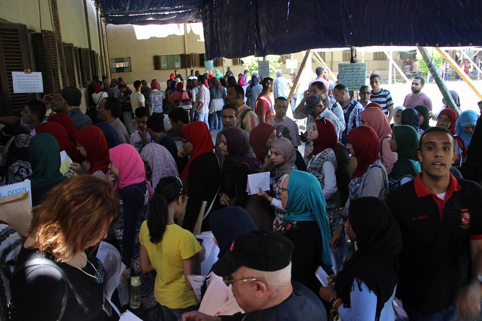 شهد مكتب تنسيق جامعة القاهرة ، اليوم الإثنين، زحامًا شديدًا من مئات الطلاب لسحب استمارات اختبارات القدرات المؤهلة للكليات التي يشترط القبول بها اجتياز هذه الاختبارات.