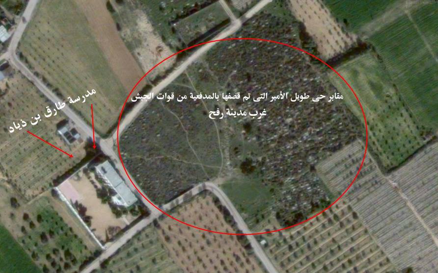 و قام الجيش المصري منذ يومين بقصف مقابر حى “طويل الأمير”غرب مدينة رفح المصرية بواسطة سلاح المدفعية والقذائف الحارقة، دون أي أسباب تذكر، حيث أصيب عدد من هذه المقابر وتهدمت، كما احترقت بعض الأعشاب المحيطة بها، وظهرت عظام الموتى في انتهاك جديد يضاف لسجل جرائم الجيش المصري فى سيناء، الأمر الذي يعد انتهاكًا صارخًا لحقوق هؤلاء الصامتين فى مقابرهم.