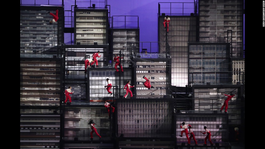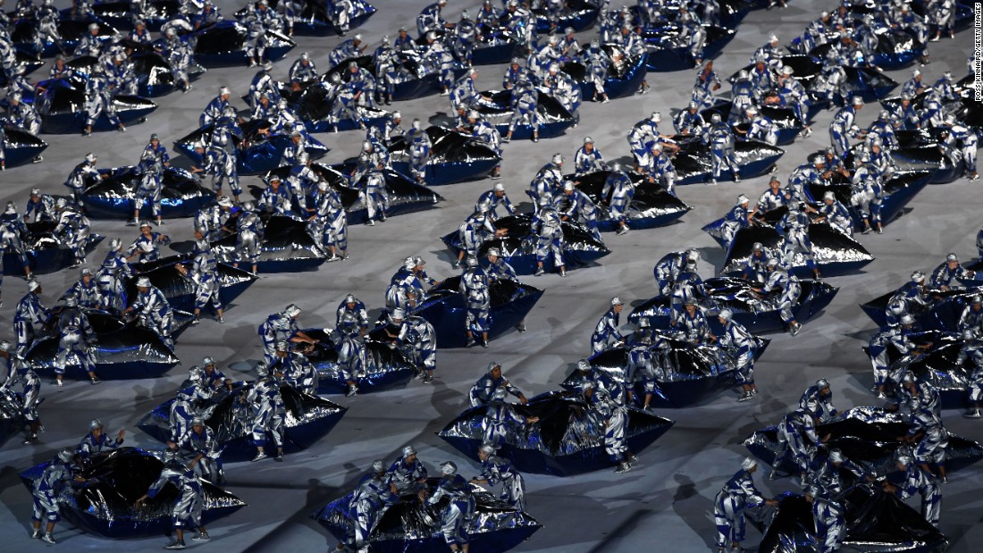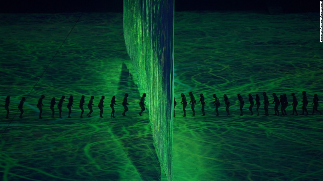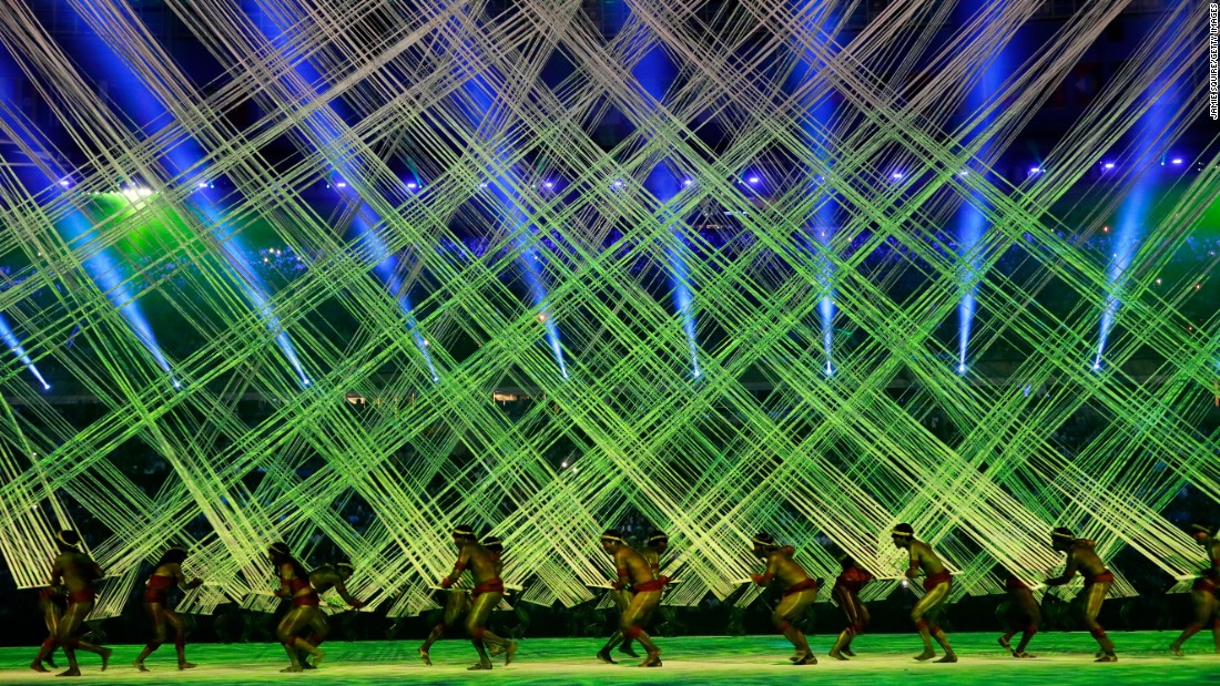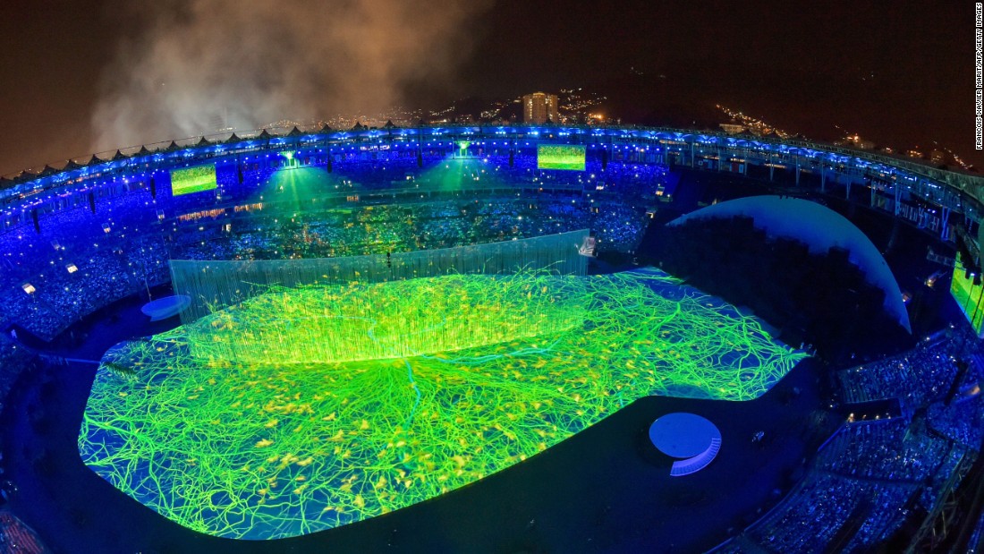 وبدأ الحفل باستعراض للألعاب النارية وعرض راقص شارك فيه الآلاف، يروي قصة نشأة البرازيل تلاه استعراض الفرق المشاركة في الأولمبياد.