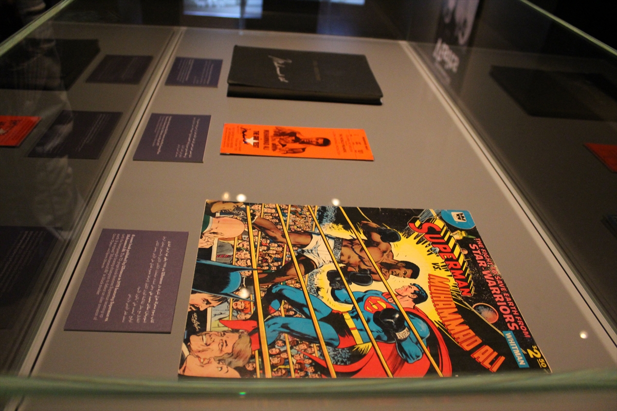 وضم المعرض أيضًا الميدالية الذهبية التي حاز عليها خلال مشاركته في أولمبياد روما عام 1960م، بالإضافة إلى ملابسه التي ارتداها خلال سلسلة مباريات شهيرة له، أهمها تلك التي حسم فيها لقب بطولة العالم على حساب “سوني ليستون” عام 1964، ومواجهته “جورج فوريمان” في 1974 التي انتهت باحتفاظه ببطولة العالم للوزن الثقيل، ومباراته بنهائي بطولة العالم ضد “ليون سبينكس” في نيو أورلينز عام 1978.