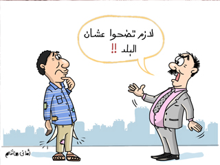 طرحت رسوم الكاريكاتير اليوم، عدة أزمات محلية وعربية، منها تدهور سعر الجنيه، وغلاء الأسعار، وسيطرة الإعلام على عقول المواطنين، وقوانين البرلمان التي يوافق عليها أعضاؤه لمصالح خاصة، وفرض ضرائب إضافية على المصريين.