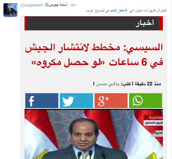 عقب انتهاء كلمة السيسي، حقق وسم “غيط العنب” تريند المركز الأول في مصر علي موقع “تويتر”، حيث سخر رواد مواقع التواصل الاجتماعي من خطابه الذي قدم التعزية في ضحايا رشيد بمشروع استزراع سمكي، ومطالبته بـ”الفلوس الفكة” الموجودة مع الشعب.