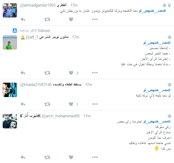وحصل هاشتاح “#مصر_هتنهض_لو” على تريند فى مصر، وجاءت التغريدات كالتالي ..