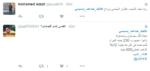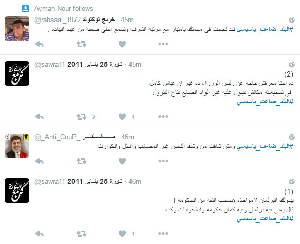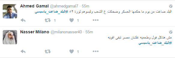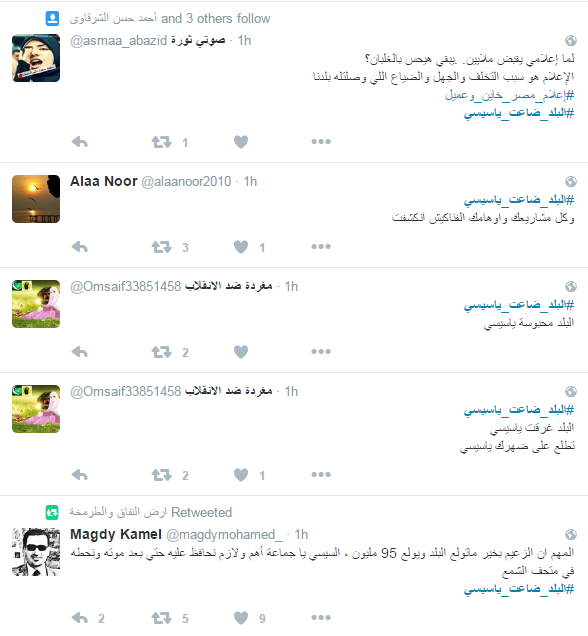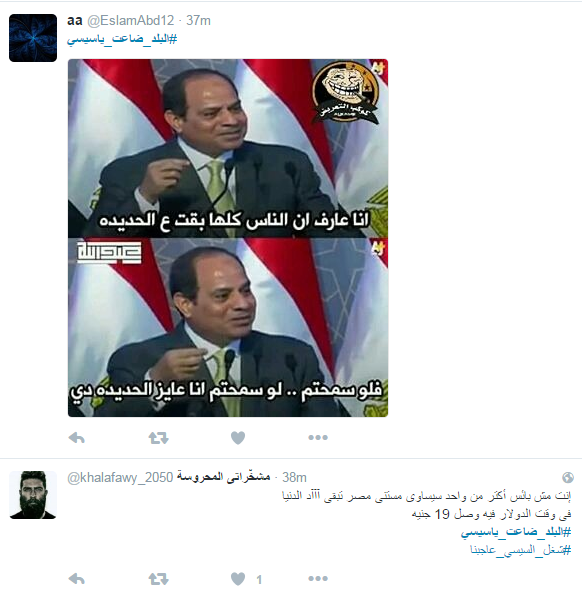 وحصل هاشتاج “البلد_ضاعت_ياسيسي” أعلى تريند في مصر على موقع التواصل الاجتماعي “تويتر”، وجاءت التغريدات كالتالى ..