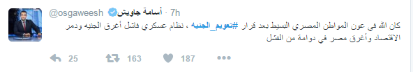 أصدر البنك المركزي اليوم قرارًا بتحرير سعر صرف الجنيه المصري مقابل الدولار؛ بحيث أطلق الحرية للبنوك العاملة في مصر لتحديد سعر الصرف من خلال آلية الإنتربنك للتعامل بين البنوك.