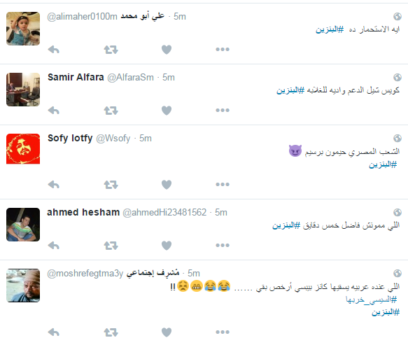 دشن نشطاء موقع التواصل الاجتماعى "تويتر" هاشتاج تحت وسم "#البنزين"، بعد قرار للحكومة منذ قليل برفع الدعم عن البنزين، وأوضح المشاركون استياءهم من القرار لاسيما بعد قرار تعويم الجنيه