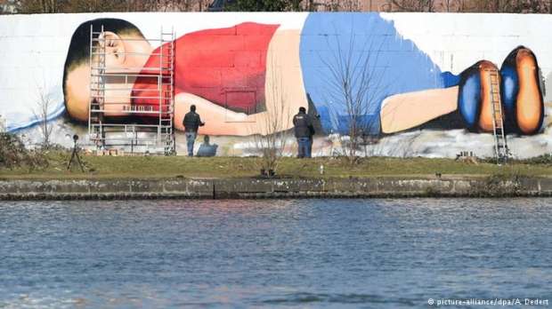 وقال الفنانان، إن صورة الطفل أثرت فيهما بشكل كبير، ورأوا ان من واجبهم نشر قضيته، خاصة أن الأوروبيين لا يهتمون بالقضايا إلا إذا كانت قريبة منهم، ولذا جسدا صورة الطفل على جدار في الناحية المقابلة من النهر للبنك المركزي الأوروبي.