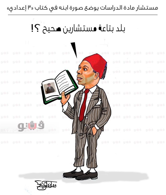 وسخرت “فيتو” في كاريكاتير اليوم، من وضع صورة ابن مستشار مادة الدراسات بكتاب 3 إعدادي