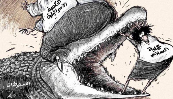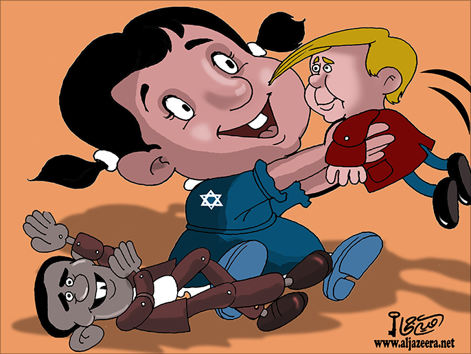 وسلطت الرسوم الساخرة الضوء أيضًا الشأن الخارجي، كأزمة المستوطنات، وسياسات ترامب تجاه الشرق الأوسط.