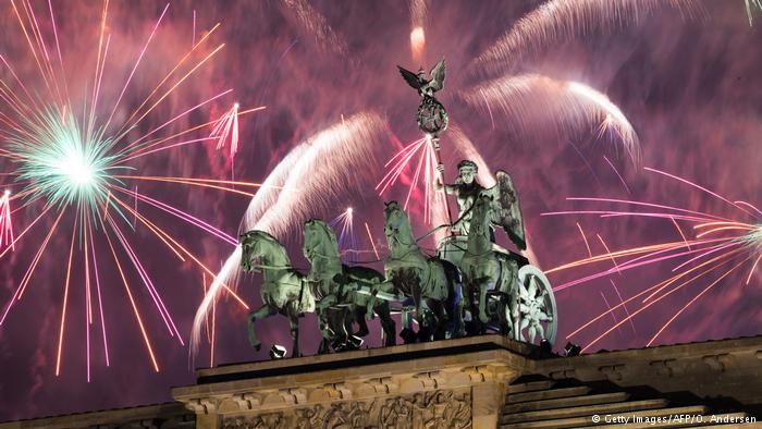 مئات الآلاف احتشدوا أمام بوابة براندنبورج في برلين لمشاهدة الألعاب النارية احتفالا بحلول السنة الميلادية الجديدة.