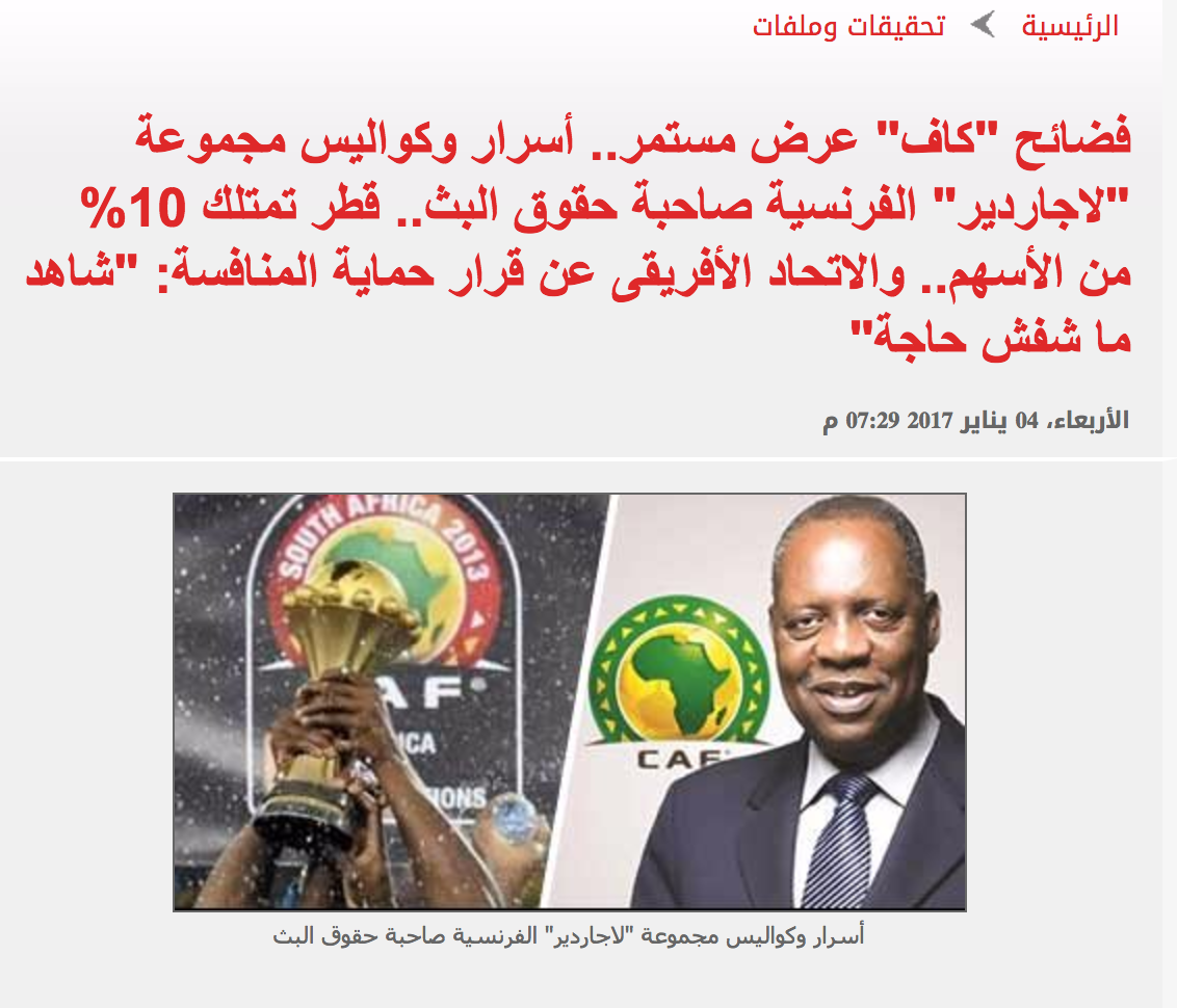 الاتحاد يتذكر جيدًا أن اللجنة التنفيذية بعد تقييم العروض المقدمة وتحت إلتزام شديد ببنود العقود، أتفقوا على تجديد تعاقد لاجاردير سبور لدورة 2017/2028، وتم هذا في يونيو 2015، والعقد يضمن زيادة واضحة في الموارد للكرة الافريقية تساعد في تطويرتها حول القارة.