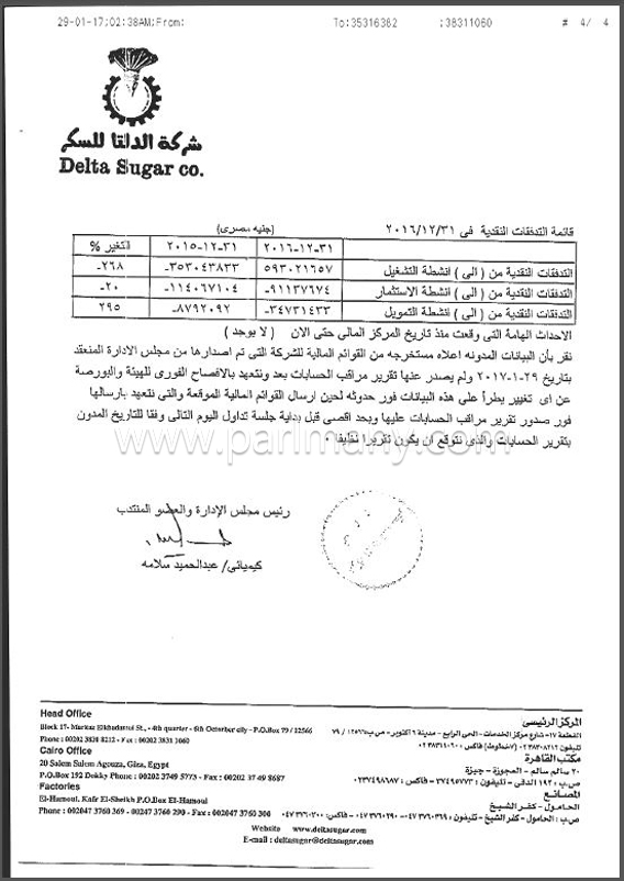 وفى 30 سبتمبر الماضى؛ سجلت الشركة صافى أرباح على مدار 9 أشهر بلغت 84.7 مليون جنيه، بينما حققت فى العام الماضى 12.4 مليون جنيه فقط، وسجلت فى آخر 3 أشهر (سبتمبر – نوفمبر – ديسمبر 2016) أرباح بلغت نسبتها 378% بمقارنة بنفس الفترة من العام السابق، وختمت الشركة أعمالها عن 2016 بإجمالى صافى ربح بلغ 154 مليون جنيه.