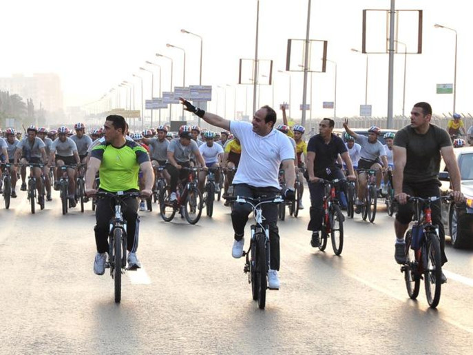 وسبق أن ظهر السيسي عدة مرات على دراجة هوائية، كانت إحداها في يوم رياضي تضمن ماراثونًا للدراجات انطلق من الكلية الحربية بمصر الجديدة وطريق القاهرة الإسماعيلية لمسافة 20 كيلومترًا، دعا خلاله المصريين إلى استخدام الدراجات في ذهابهم إلى أعمالهم كدعوة للتقشف.