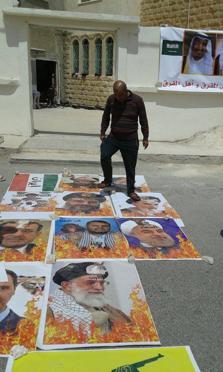وقام المتظاهرون بحرق صور، قائد الثورة الإيرانية آية الله الخميني، والمرشد الإيراني علي خامنئي، والرئيس الإيراني حسن روحاني، ورئيس النظام السوري بشار الأسد، والأمين العام لحزب الله اللبناني حسن نصر الله، وزعيم جماعة أنصار الله (الحوثي) باليمن عبد الملك الحوثي، ورئيس الوزراء العراقي السابق نوري المالكي، بالإضافة إلى حرق العلم الإيراني.