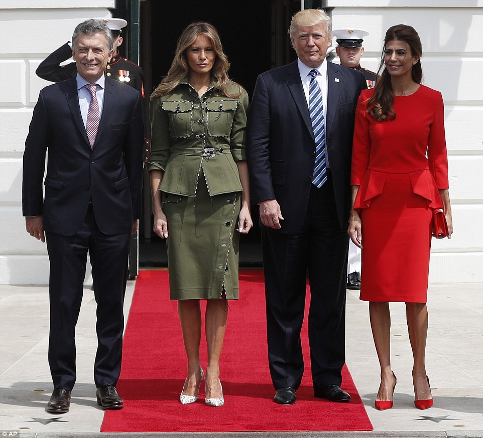 وعقد اللقاء الرسمي في البيت الأبيض، بين الرئيس الأميركي دونالد ترامب، وزوجته، مع الرئيس الأرجنتيني موريسيو ماكري وزوجته جوليانا عواضة.