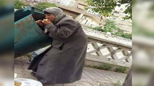 انتشرت صورة لسيدة سورية تأكل من القمامة، في منطقة المالكي، بالعاصمة السورية دمشق، والتي تبعد مسافة بسيطة عن قصر الأسد في المهاجرين حيث تظهر الصورة سيدة مسنّة تلتقط بيدها اليسرى ما يشبه التفاحة، من حاوية قمامة، وتقضمها بينما تتكئ بيدها اليمنى على حاوية القمامة.