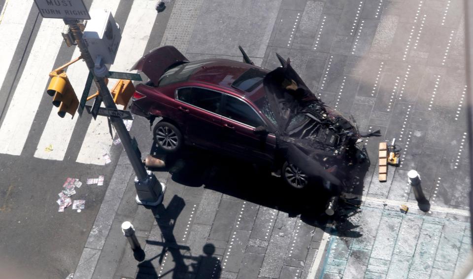 وقالت مؤسسة الإطفاء في نيويورك سيتي إن عدد المصابين يبلغ 13 شخصا على الأقل بعد أن صعدت السيارة على رصيف الموقع السياحي المكتظ بالمشاة.