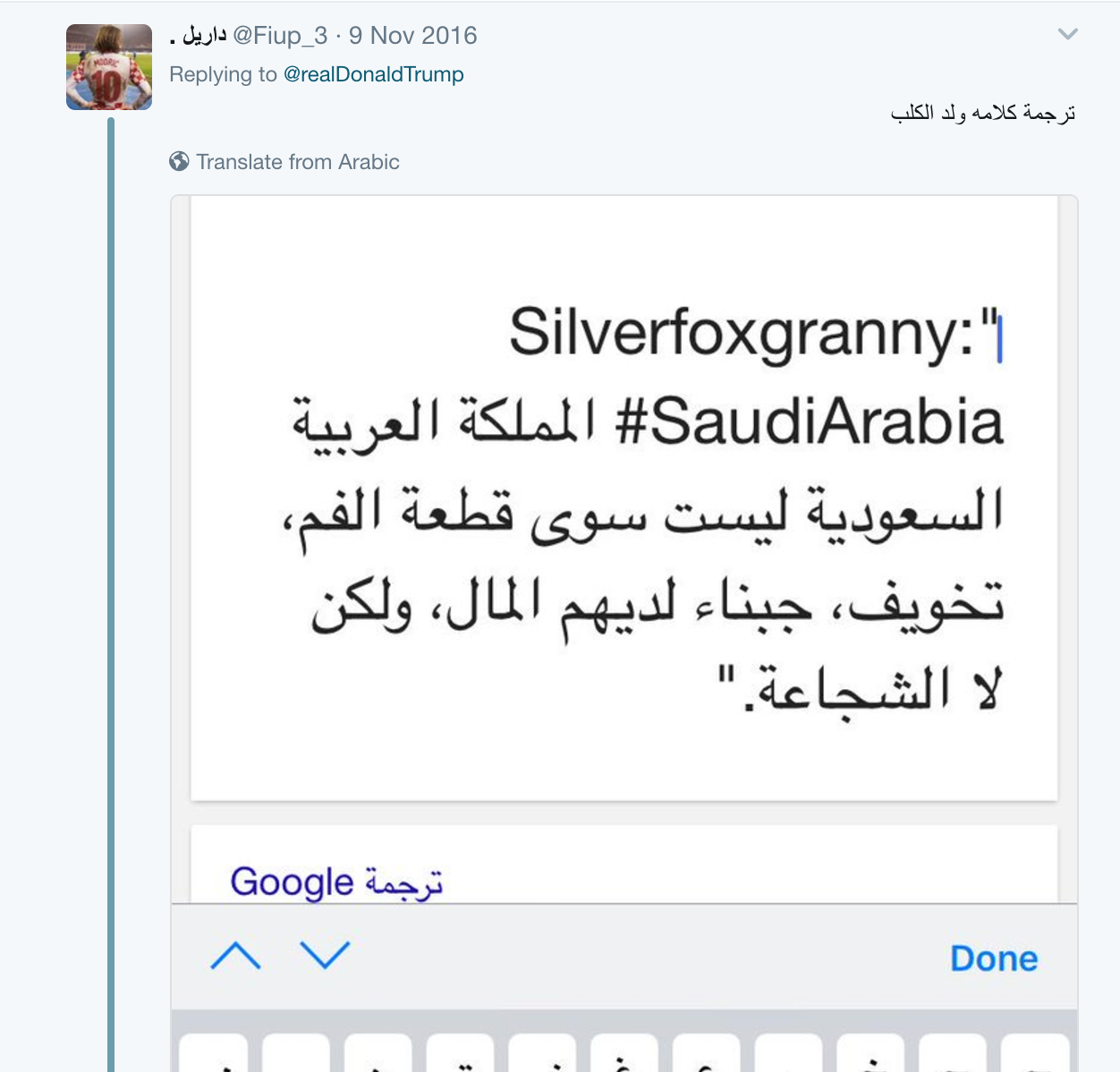 وفي السياق، شارك مغردون في الرد على تغريدة دونالد بصور تظهر الود والحفاوة المتبادلة بينه والملك سلمان في السعودية؛ عكس ما تدعو إليه تغريدته التي لا زالت على حسابه.