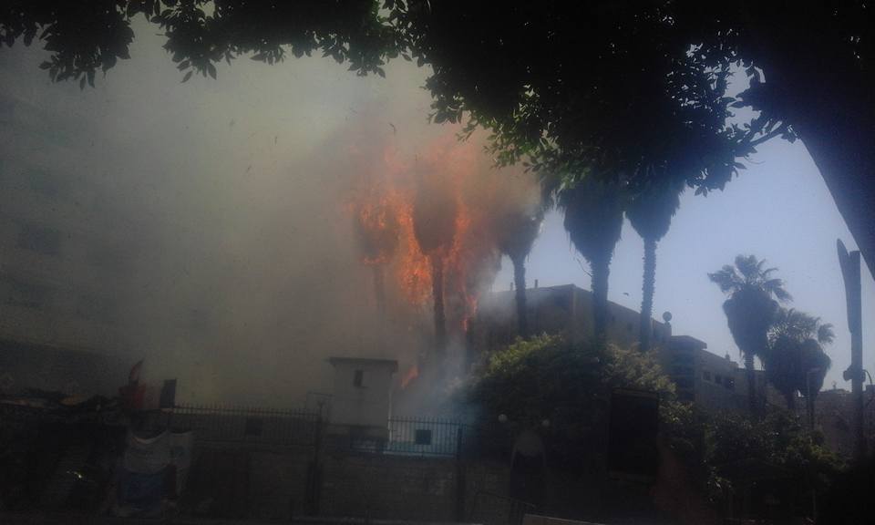 شب حريق في عدد من أشجار النخيل بالقرب من سنترال العتبة، اليوم السبت، وهرعت سيارات الإطفاء إلى مكان الحريق خشية امتداد النيران للمباني.