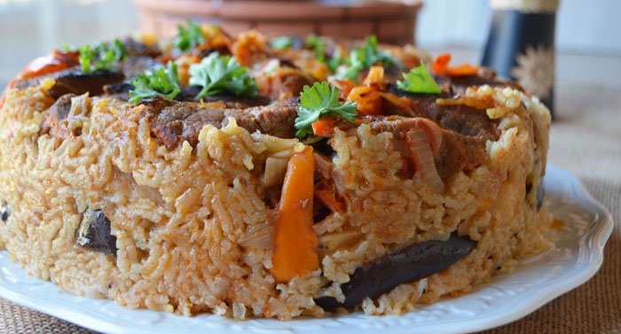 تعتبر المقلوبة من أشهر الاطعمة الفلسطينية، وفيها يدمج الأرز والدجاج بالباذنجان.