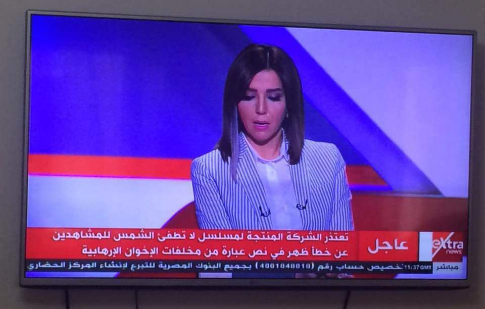 نشرت فضائية “إكسترا نيوز” في خبر عاجل، اليوم، اعتذار من الشركة المنتجة للمسلسل الرمضاني “لا تطفئ الشمس”، وذلك بسبب مشهد ظهر فيه عبارة “cc خاين” على إحدى الحوائط .