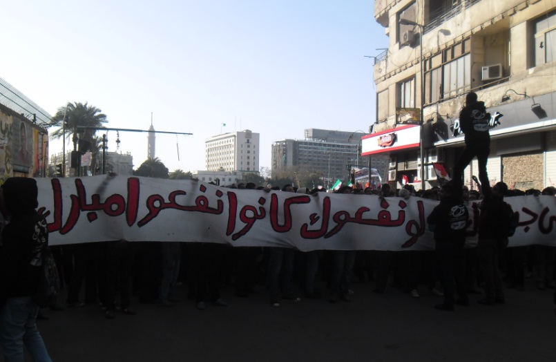 انطلقت مسيرة تضم العشرات من شباب التراس ثورجى من شارع محمد محمود بالتحرير إلى منزل الشهيد جابر صلاح"جيكا" بعابدين للمطالبة بالقصاص له ومحاكمة المسئولين.