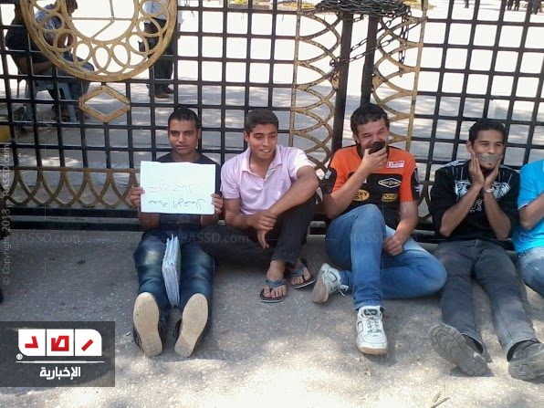 كما كمم الطلاب أفواههم بالأشرطة اللاصقة ، مرددين هتافات "أدي عزة وادي جهاد والجامعات مليانة فساد" و"افهم دورك في القضية التعليم يعني حرية"، و"علي وعلي وعلي الصوت اللي هيهتف مش هيموت"، و"يا لي ساكت ساكت لية انتي خايف ولا اية"، "مش هنقول ماتت وخلاص دم عزة فوق الراس".