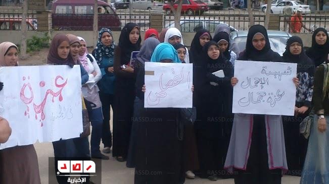 ورفع الطلاب لافتات مكتوب عليها "شهيدة الإهمال عزة جمال"، "إحنا جايين نتعلم مش جايين نموت " نطالب بإقالة المسؤلين عن الإهمال".